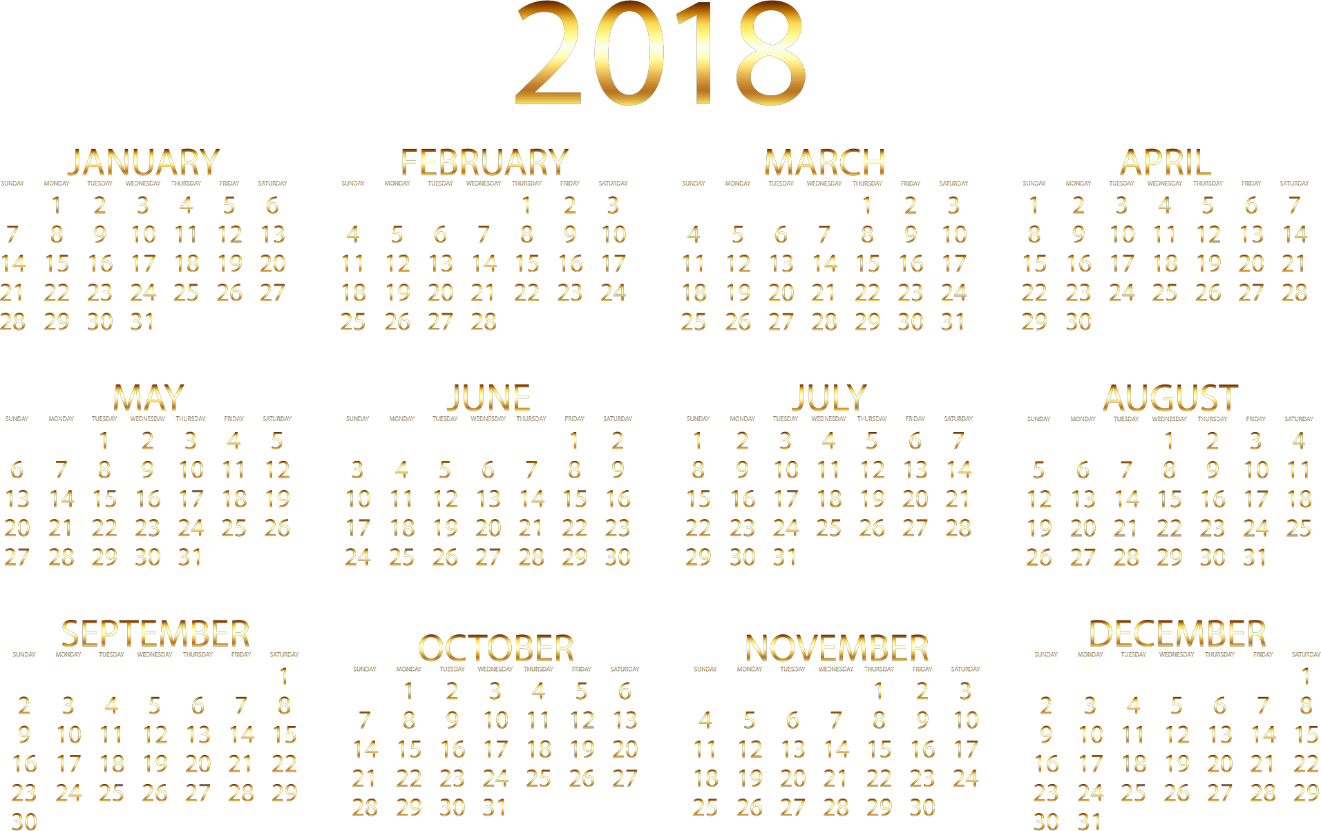 2018 Calendar Gold No Background