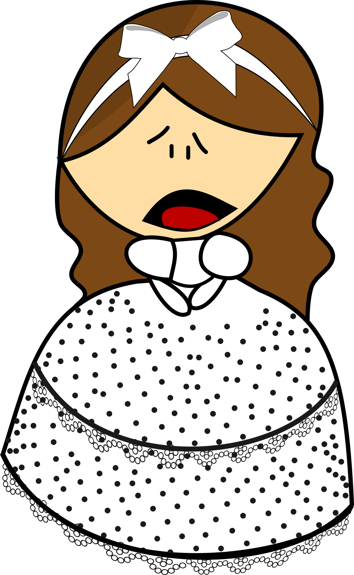 Generated dress by looking at intorow's handmade doll on Pixabay and copying its design. Made black ribbon white. This image is well under 100K. Created this out of need of a nice looking cartoon character without other characters or items in the graphic.