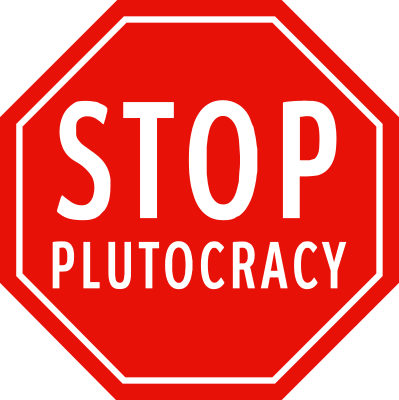 STOP PLUTOCRACY. Sign of the times, circa 2017. Replaced font with Roadgeek 2005 Series 1B.