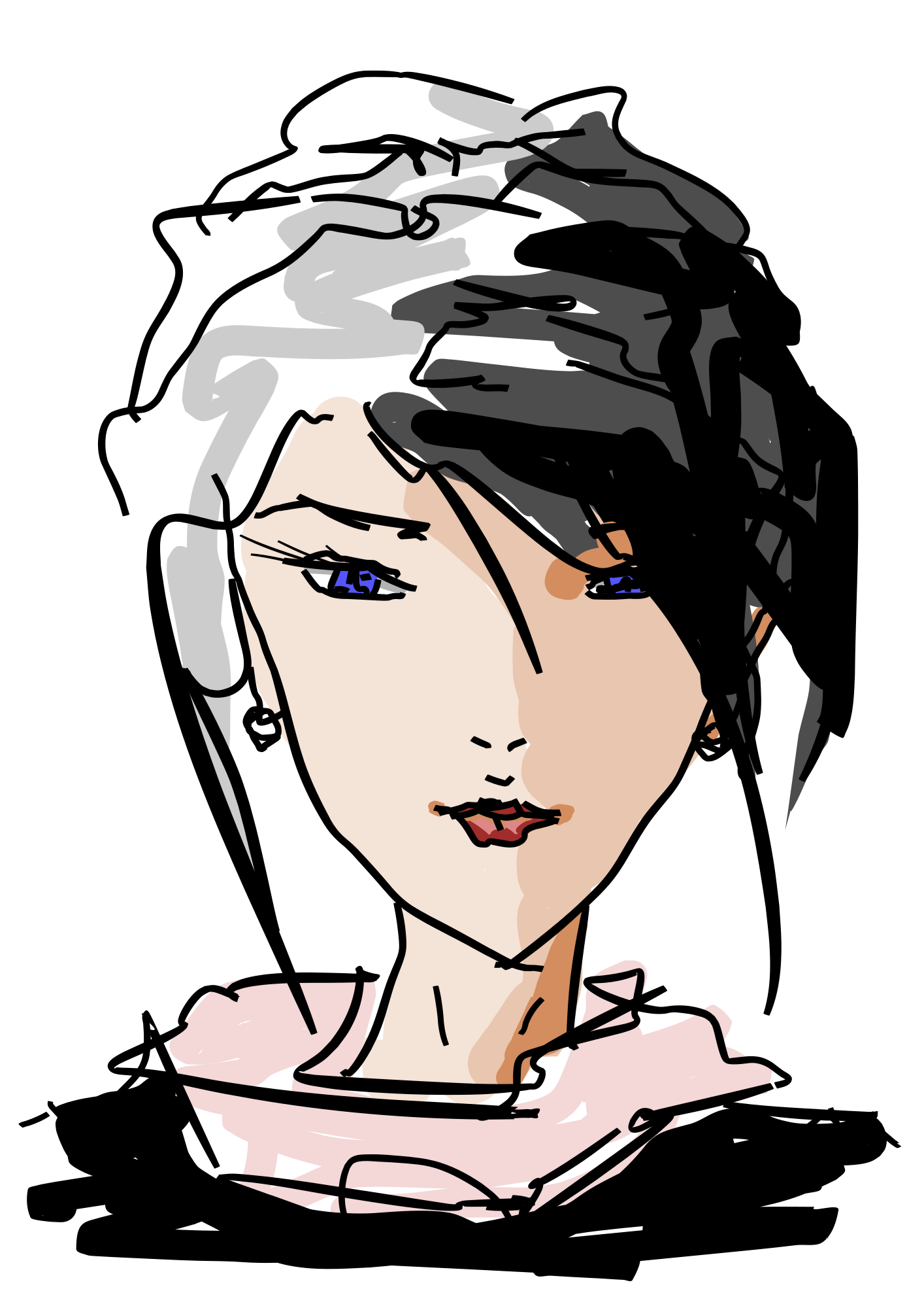 Woman's face with hair. Drawn loosely in Inkscape with mouse.