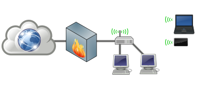 Computer network with external firewall (hardware firewall)