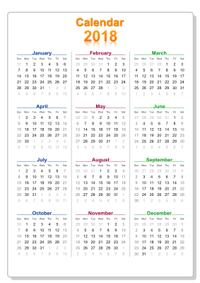 calendar 2018 colorful with border