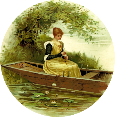 - boat country countryside girl lady lake Reflective of the Victorian Edwardian & Georgian Penman Ship Era river riverbank rural scene woman