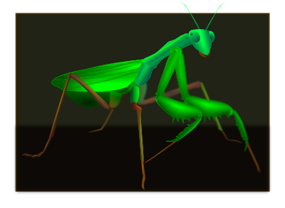 Green mantis on a dark background.