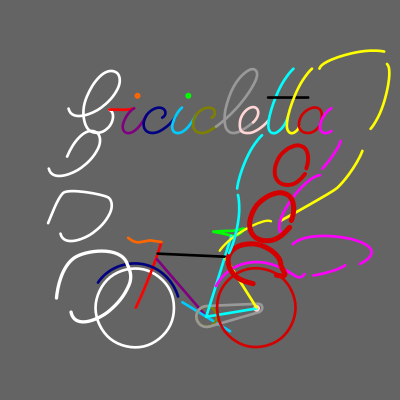 A bicycle assembled from script writing. Base to make a morph animation as the start-end keyframes.