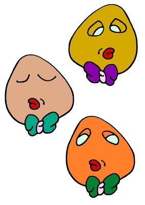 Three cartoon heads with bow tie.