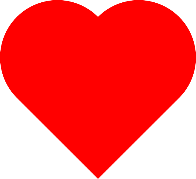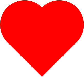 Simple heart shape. Based on a perfect square, and two perfect half circles of the same diameter. Single path, small file size, under 200 bytes.