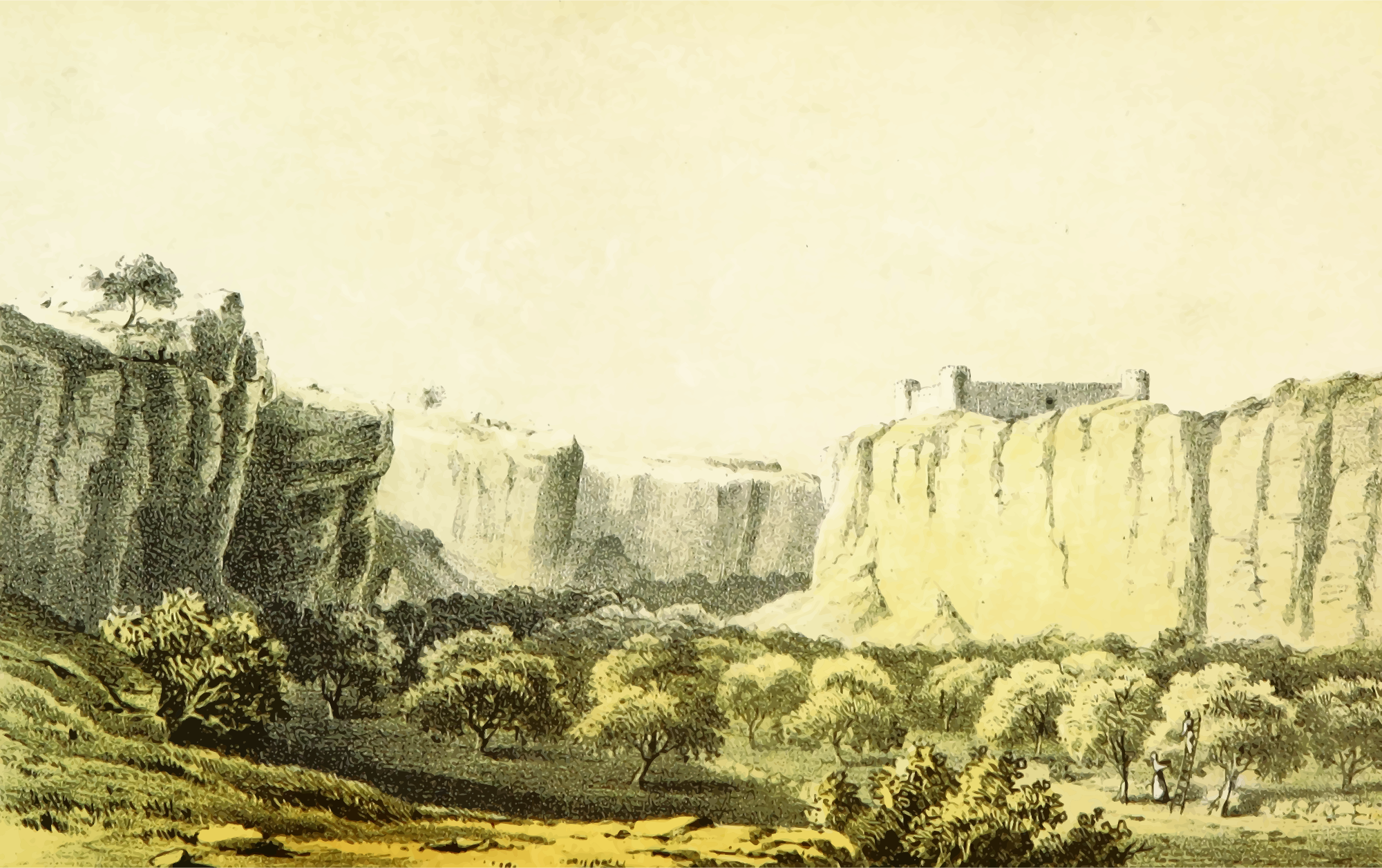 From a drawing in 'Travels and Discoveries in North and Central Africa: being a journal of an expedition undertaken under the auspices of H.B.M.'s Government, in the years 1849-55', Heinrich Barth, 1857. This 5-volume set had around 50 colour plates featuring African scenes. I mean to upload vector versions of all of them over the next few days.