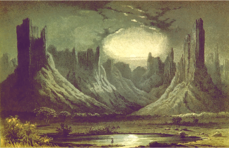 From a drawing in 'Travels and Discoveries in North and Central Africa: being a journal of an expedition undertaken under the auspices of H.B.M.'s Government, in the years 1849-55', Heinrich Barth, 1857. This 5-volume set had around 50 colour plates featuring African scenes. I mean to upload vector versions of all of them over the next few days.
