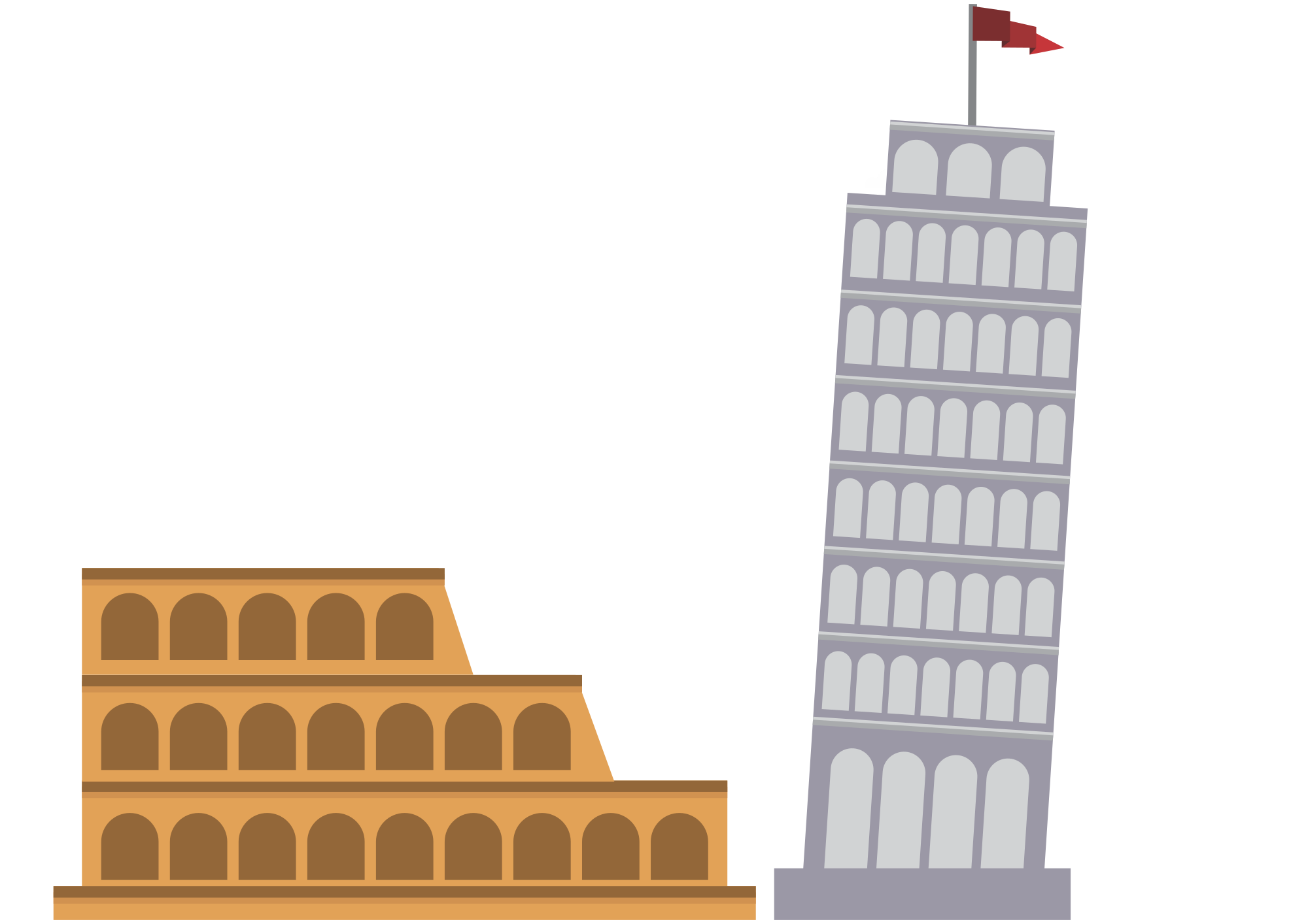 The tower of Pisa and Rome Colosseum.