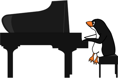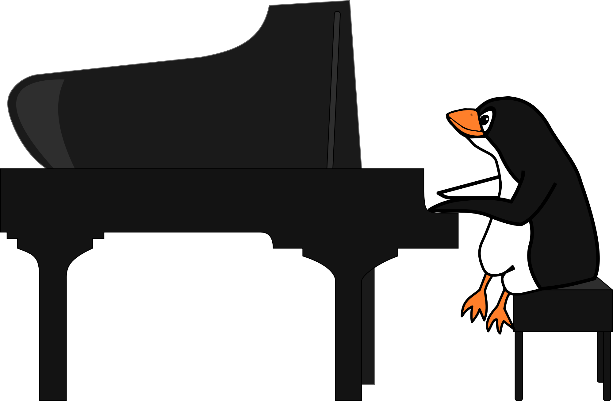 Tux performing using a grand piano. Each of the three items is a group, and can be re-used. Everything is easily re-colorable.