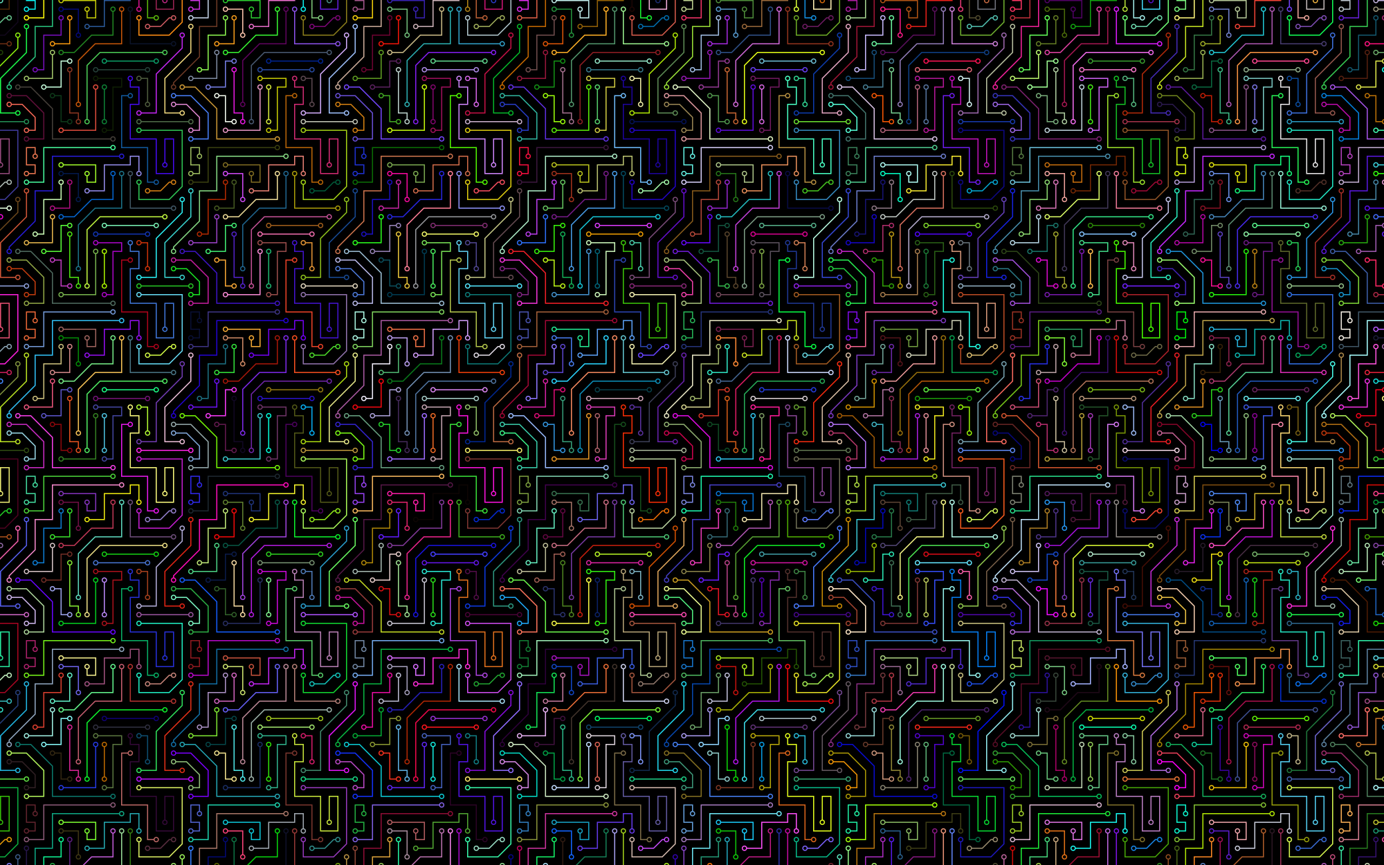 - Computer Cyber Circuitry Circuits Electronic Digital Binary Ones PCB Printed Circuit Board Zeroes Computers Networking Internet Communications Interconnects Seamless Pattern Wallpaper Background Colorful Prismatic Chromatic Rainbow