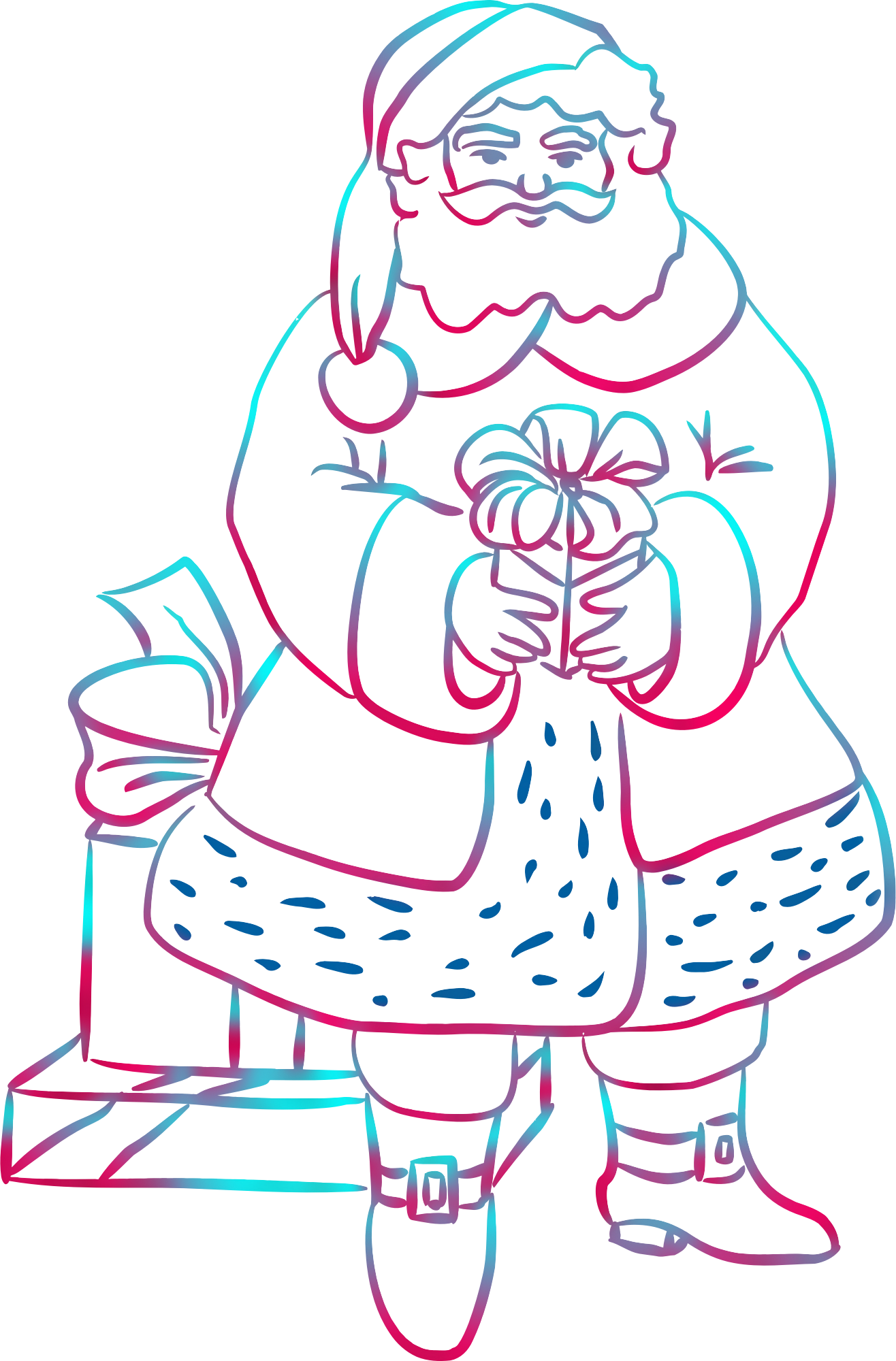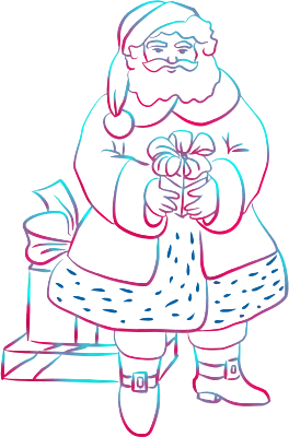 Santa Claus And Presents Line Art
