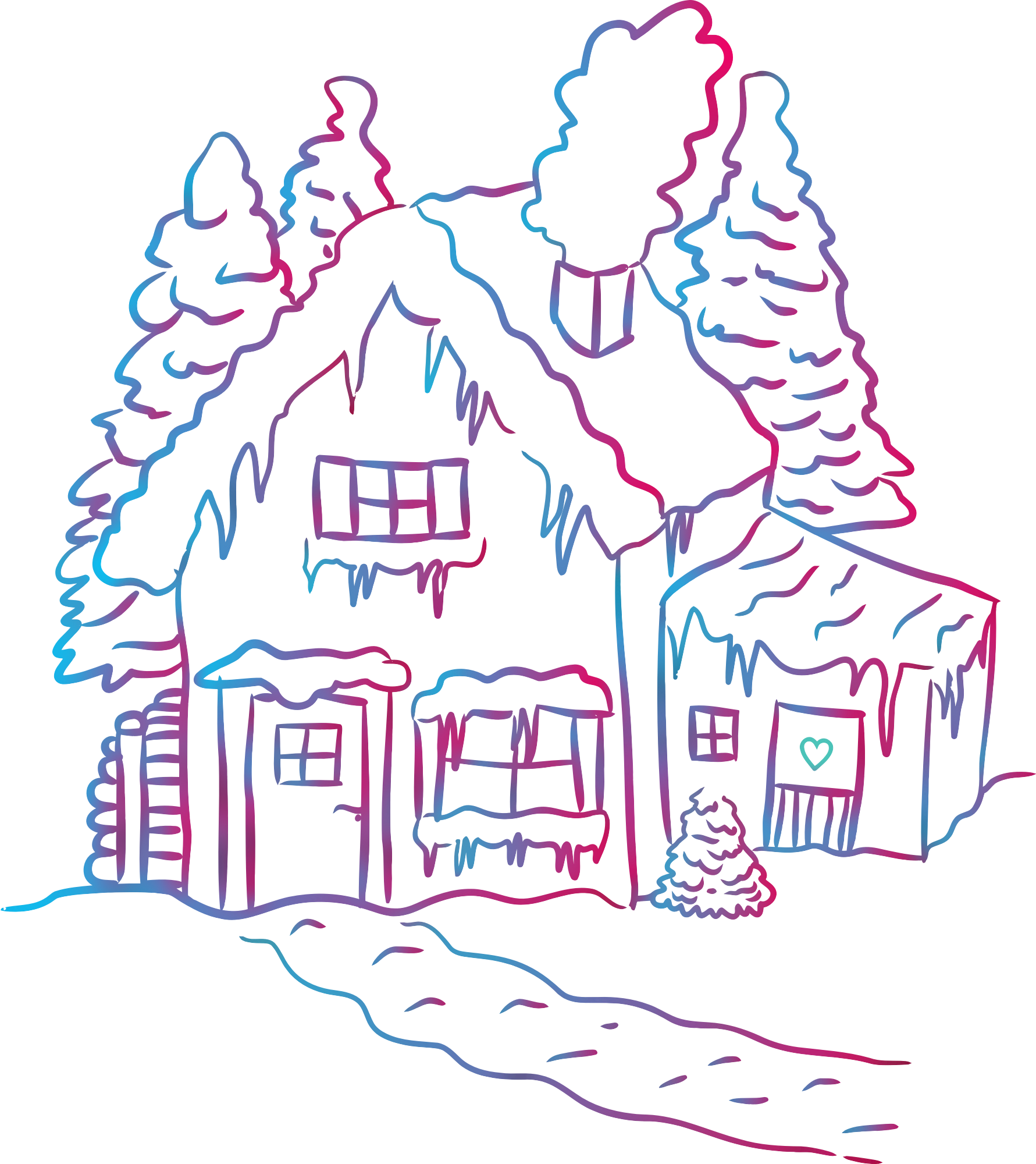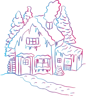 Winter House Scene Line Art