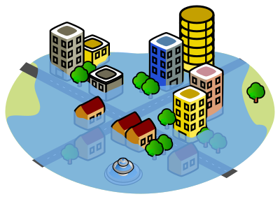 Simplified flooded city.