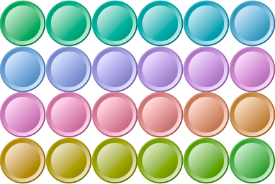 Buttons in 24 different colors, linear gradient creating a pseudo 3D effect