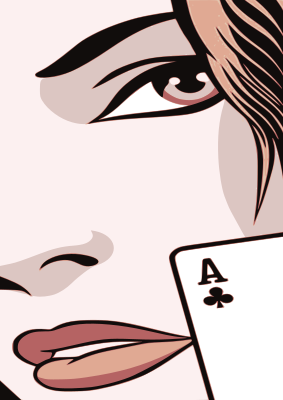 Woman's face with playing card.