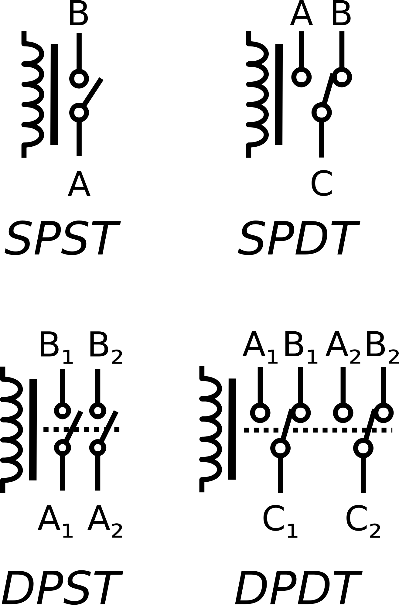 - relay symbols spst spdt dpst dpdt electromechanical electronic switch