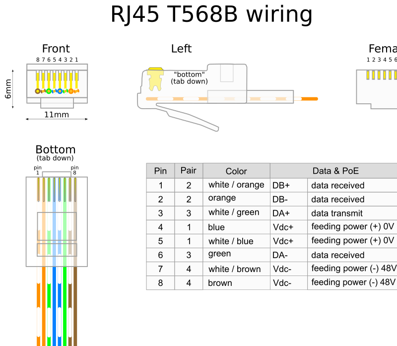 UTP Cat5E, RJ45 wiring diagram
