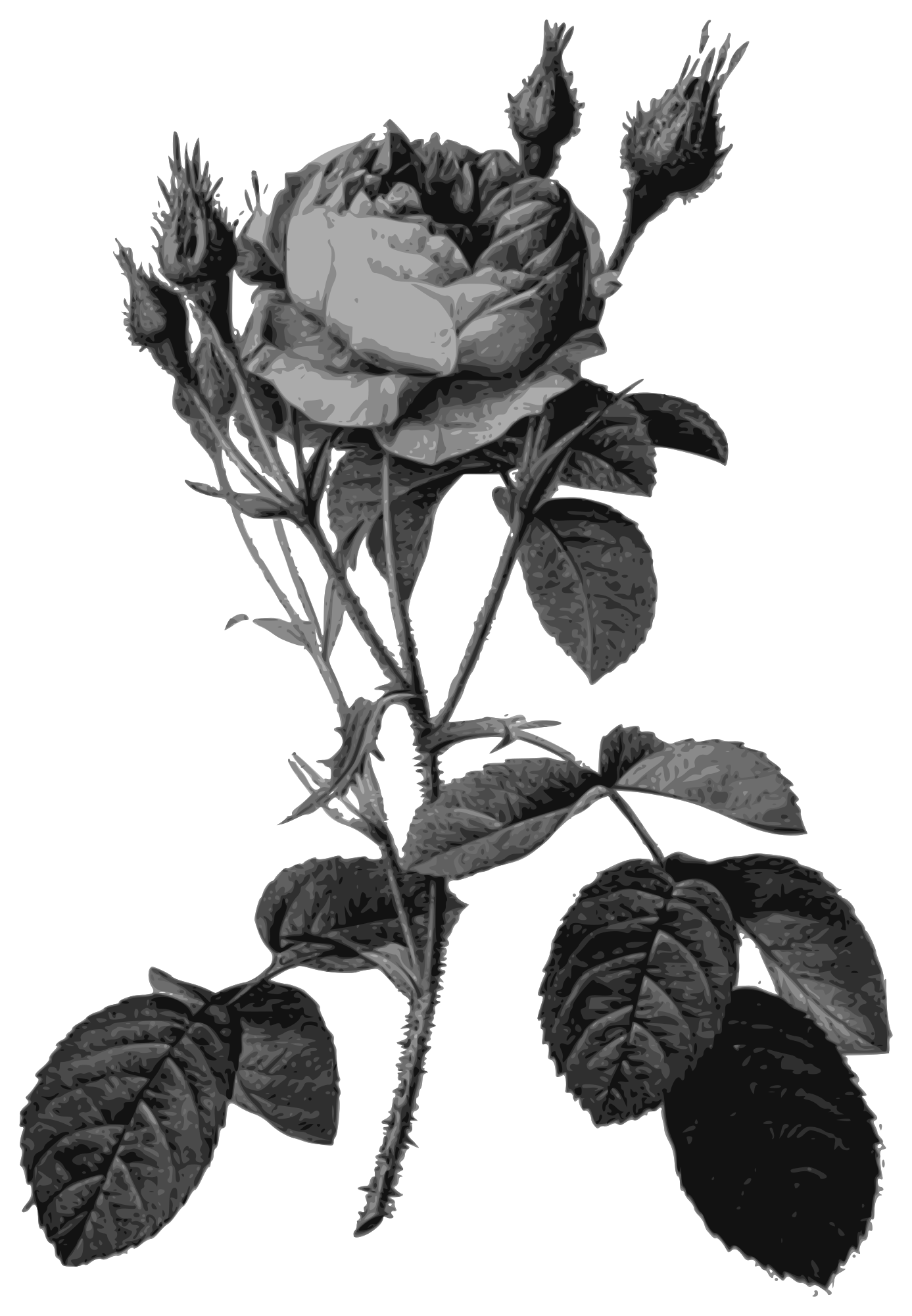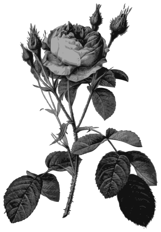 Redoute - Rosa muscosa multiplex - grayscale