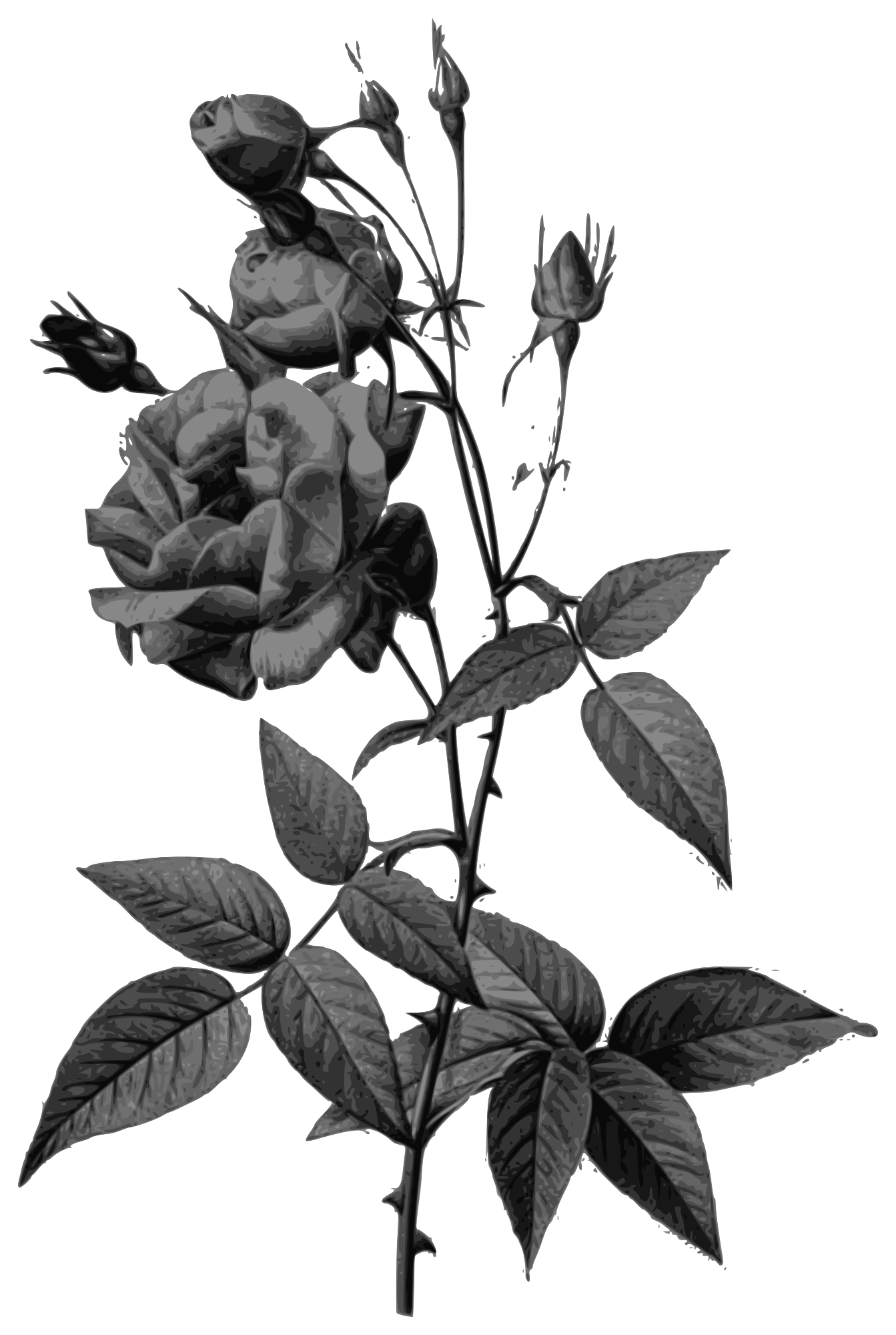 Redoute - Rosa indica vulgaris - grayscale
