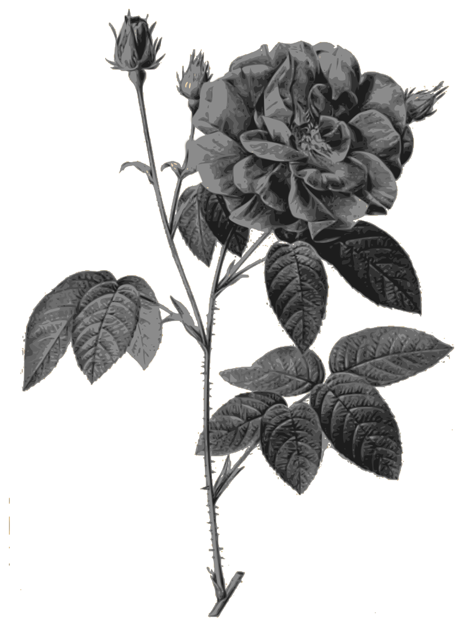 Redoute - Rosa gallica officinalis - grayscale