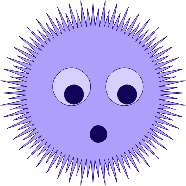 A surprised explorer. Made from just two basic shapes offered in Affinity Designer: A double star and a circle. The circle, of course, is also an SVG element, while the double star has to be made by drawing a bunch of straight lines.