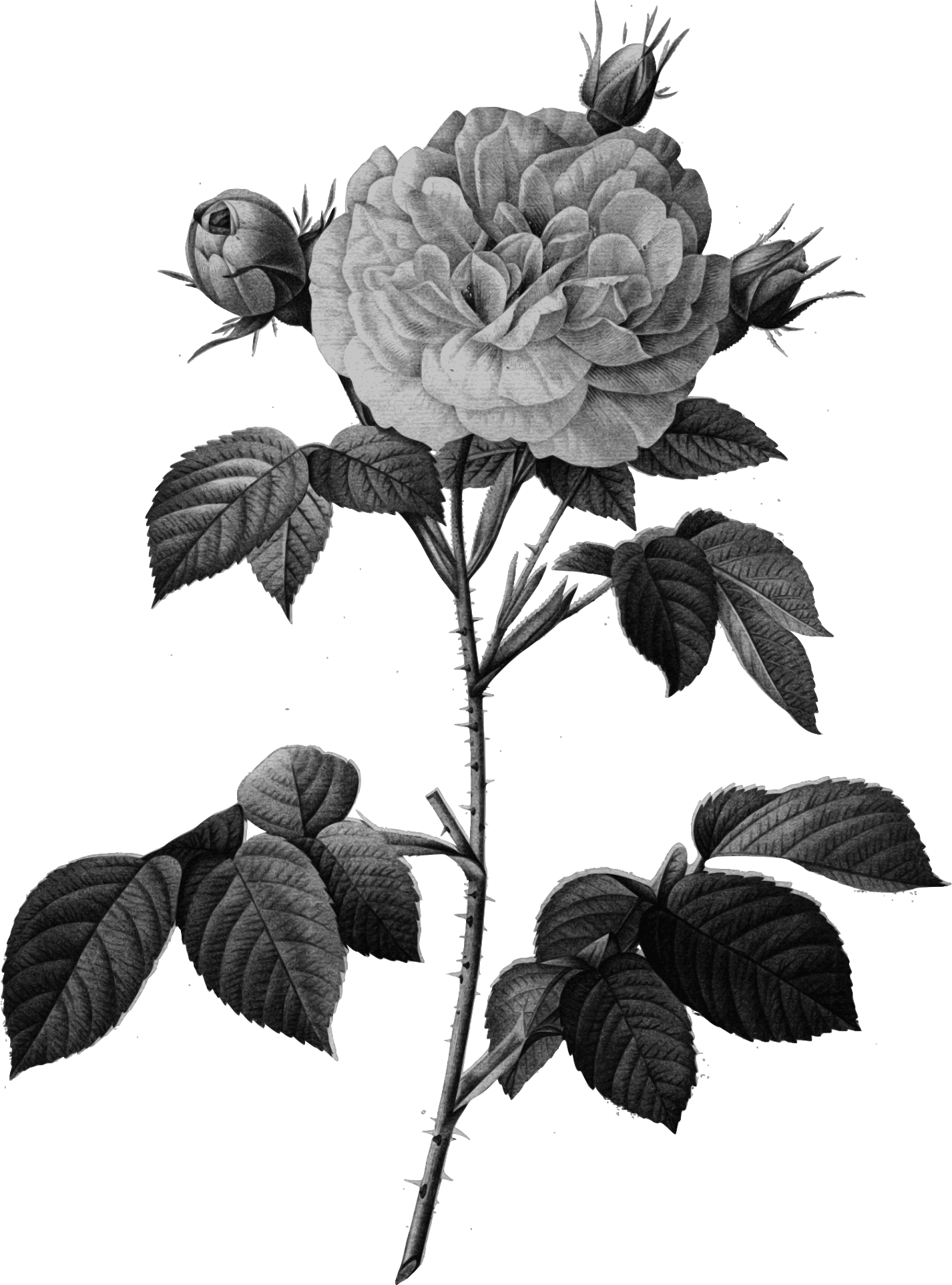 Redoute - Rosa alba regalis - grayscale