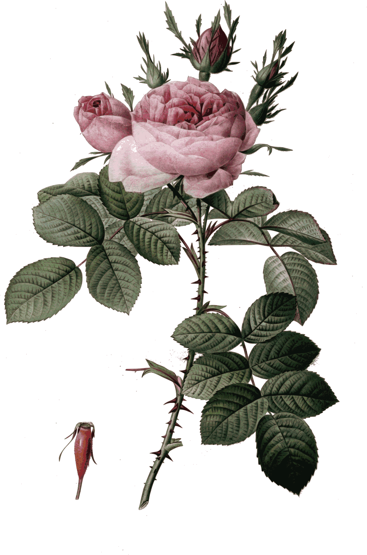 - botany color engraving external source flower loc pink pink rose plant redoute Redoute Roses - color remix+300439 rose