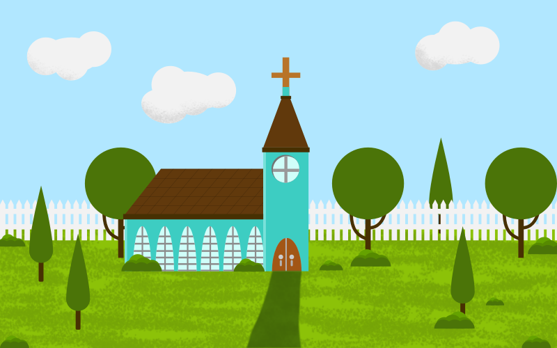 Quick vector drawing of a countryside church. Done with Affinity Designer.