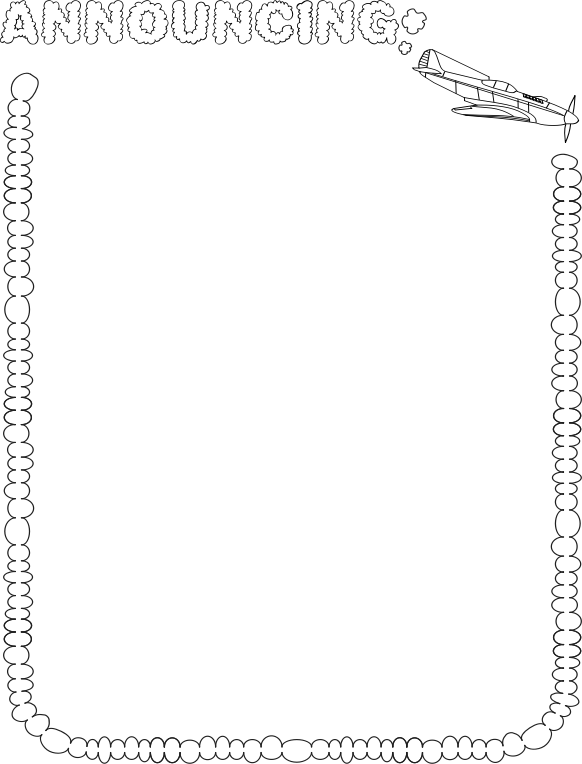 Skywriting style announcing sign, poster or border. Sized for US (8.5x11in) paper---The WW2 Fighter Plane is from a upload by Siddymcbill