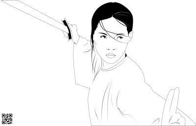 lady, young woman, sword, fight, crouching tiger, qr tag, dynamic size