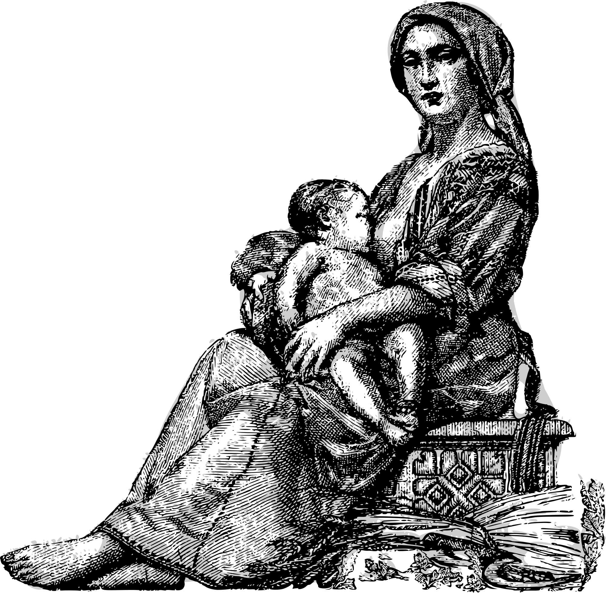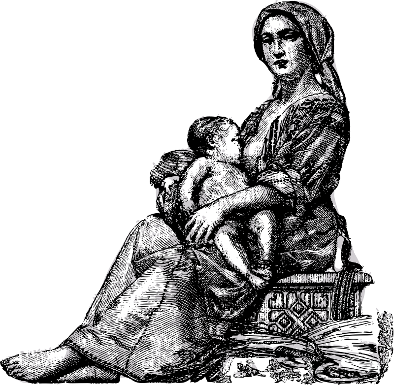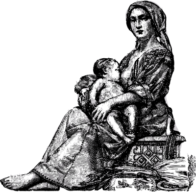 A very natural way for a baby to get nutrition. (Based on a public domain Romanian money depiction.)