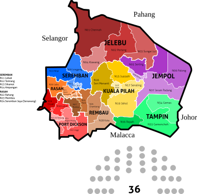 Map of the constituencies of the Negeri Sembilan State Legislative Assembly (Dewan Undangan Negeri Negeri Sembilan) for 2018 election