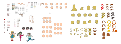 Basic head and face parts designed to build comic and cartoon characters. Combined with another kit with additional hair, eyes, and mouth options.