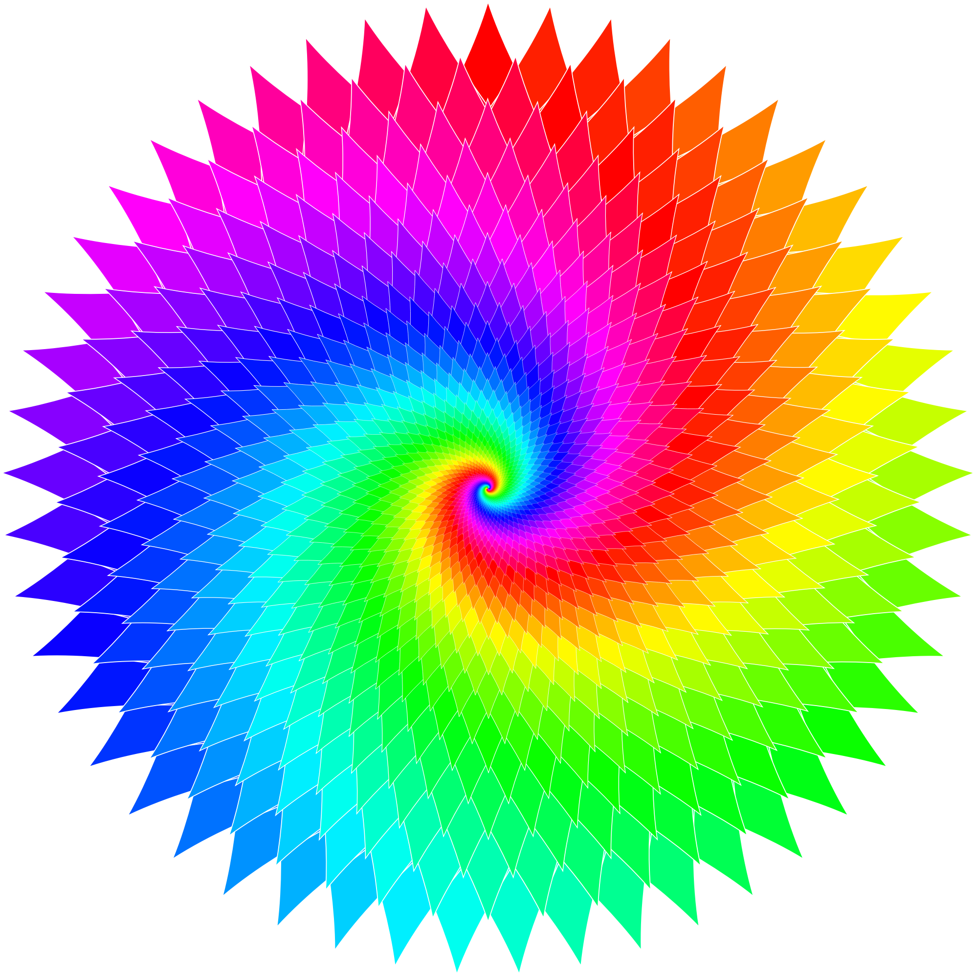 The File Sahasrara.svg on commons inspired me to produce this clipart. colorfilter hueRotate did not work for me, maybe I did something wrong, it produced ugly colors. I had to hardcode the colors, 48 of them, rotated hue stepwise by 360/49