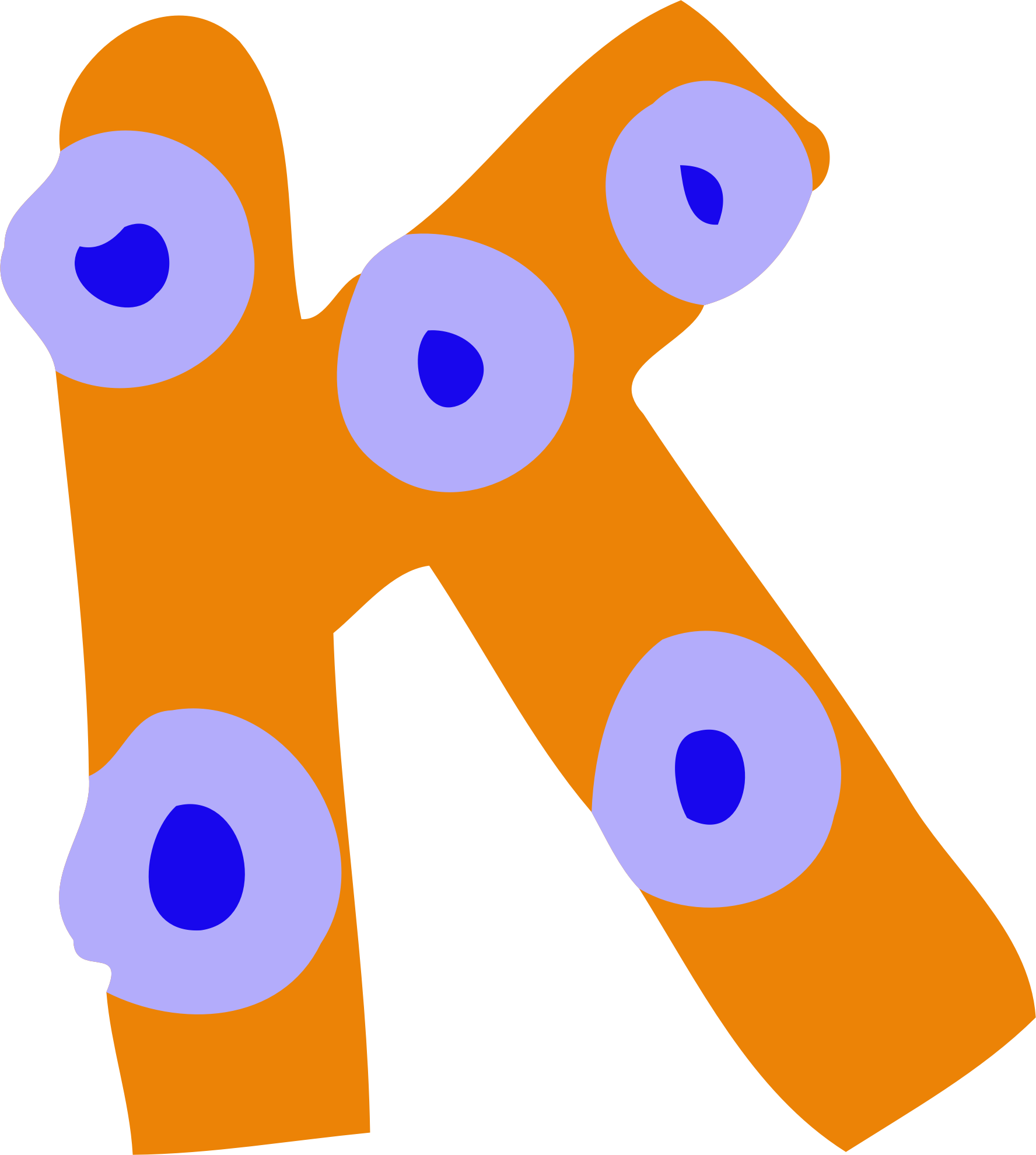 A colourful irregular letter K cut and vectorised from a JPG that was uploaded to Pixabay by Prawny