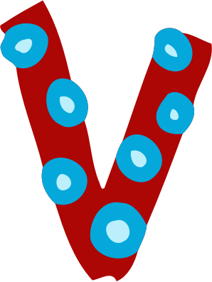 A colourful irregular letter V cut and vectorised from a JPG that was uploaded to Pixabay by Prawny