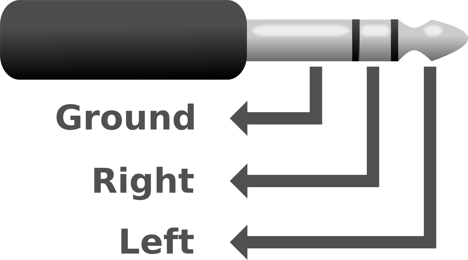 The sleeve is connected to the ground, the tip to the left audio signal, and the ring (between the sleeve and the tip) to the right audio signal.