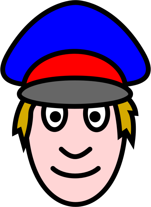 A simple colored head of a police man. Comic style. Might work as a icon.