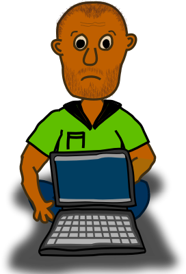 Thanks to AsAfChE for the inspiration. When the days are warmer, many people enjoy computing outdoors. This man was excited about using his new machine in the open, but he forgot to carry his charger! Now he's worried about getting some work done; unfortunately, he's a long way from home! He's going to need to buy another charger, if he can find the right place. It's just too hot for him to sweat and worry.