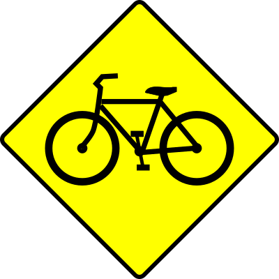 Caution sign warning of bicycles using the road.