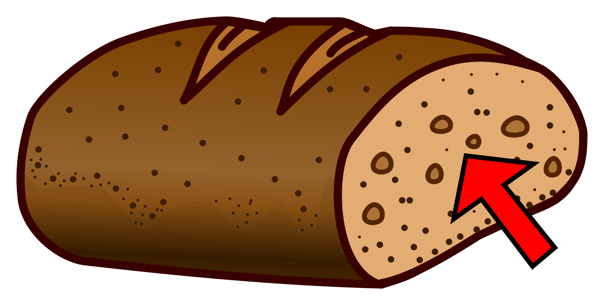 Cut bread whose soft part is shown by a read arrow.