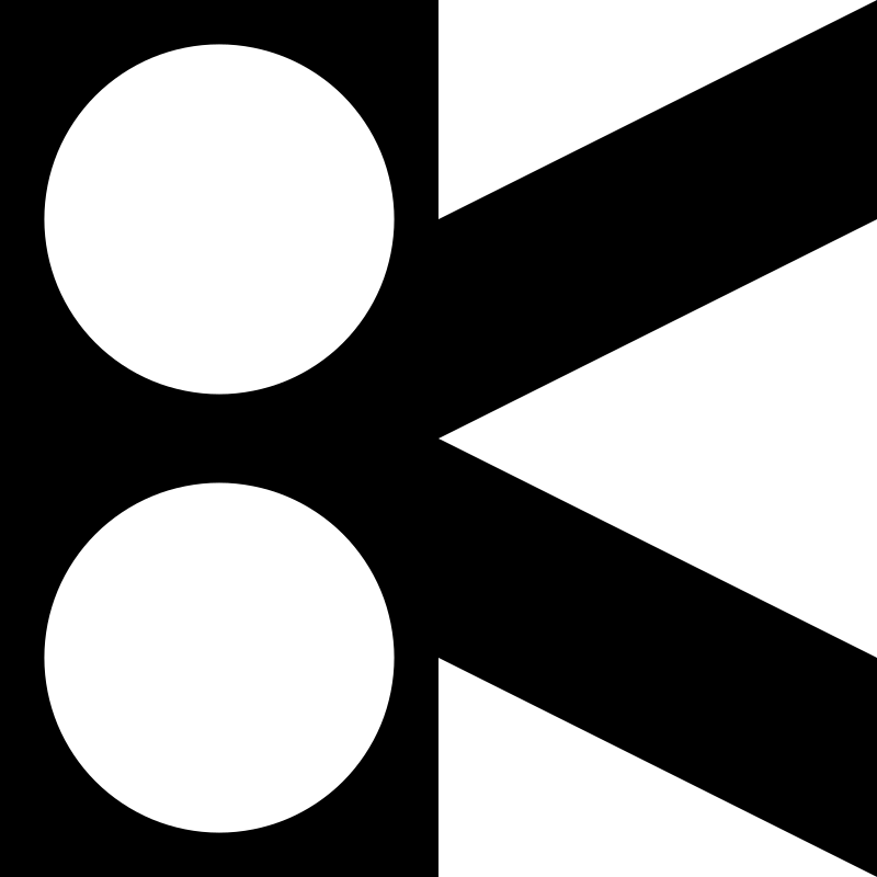 A stylised scissors in a square shape.