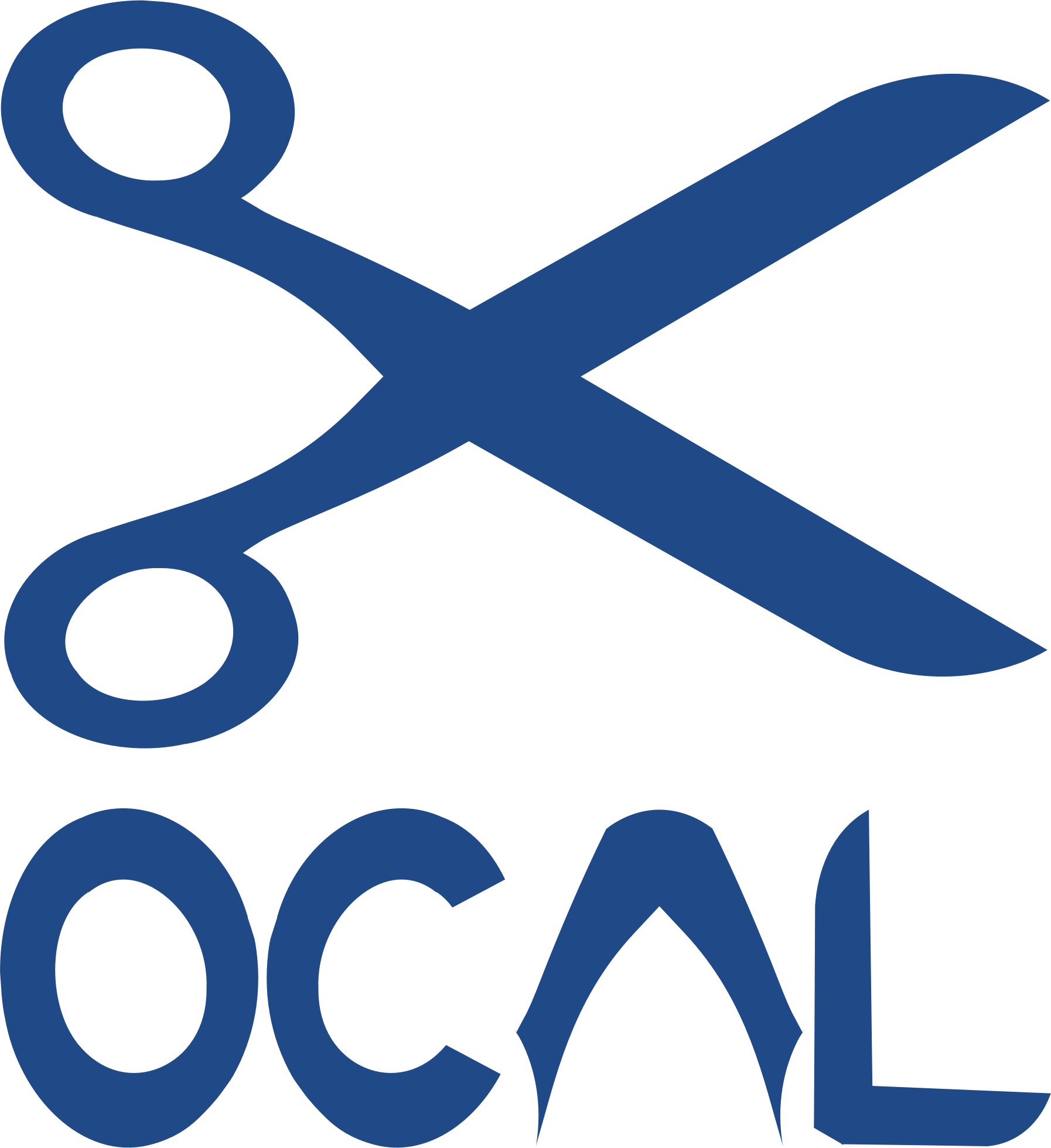 OCAL logo with the letters O C A L formed by diving the scissors logo in to shapes. The handle was used for O, C and A. The blades for the L.
