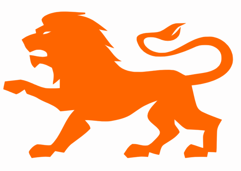 An orangey roaring lion! What is it pointing at?