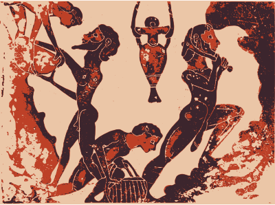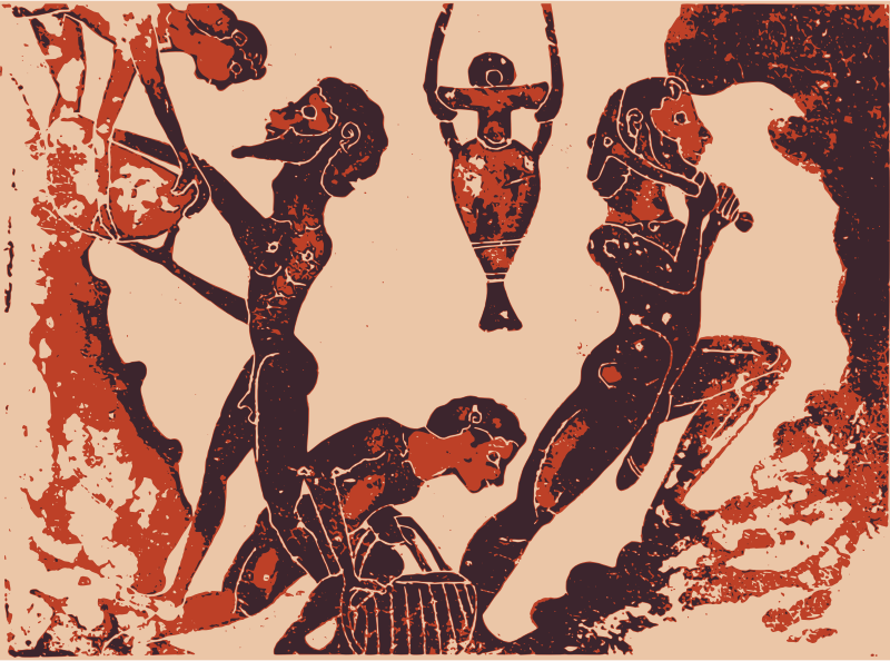 This is an ancient image depicting slaves working in a mine in Ancient Greece.