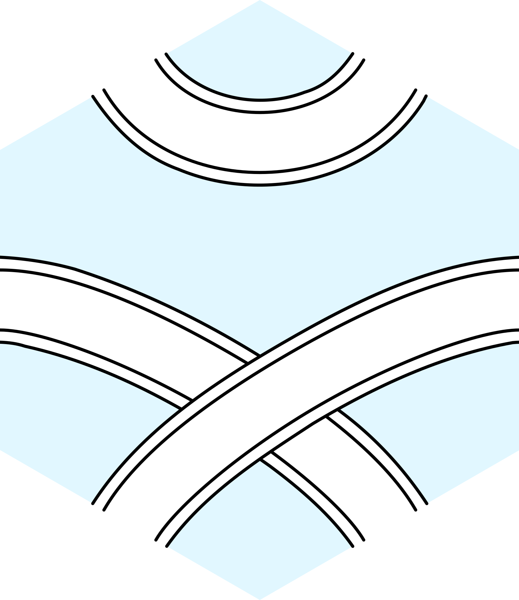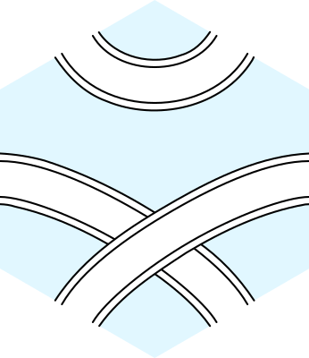 An hexagonal tile with paths connecting its sides, for board games.Size is compatible with the standard hexagonal stickers (hexb.in/)