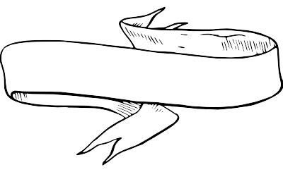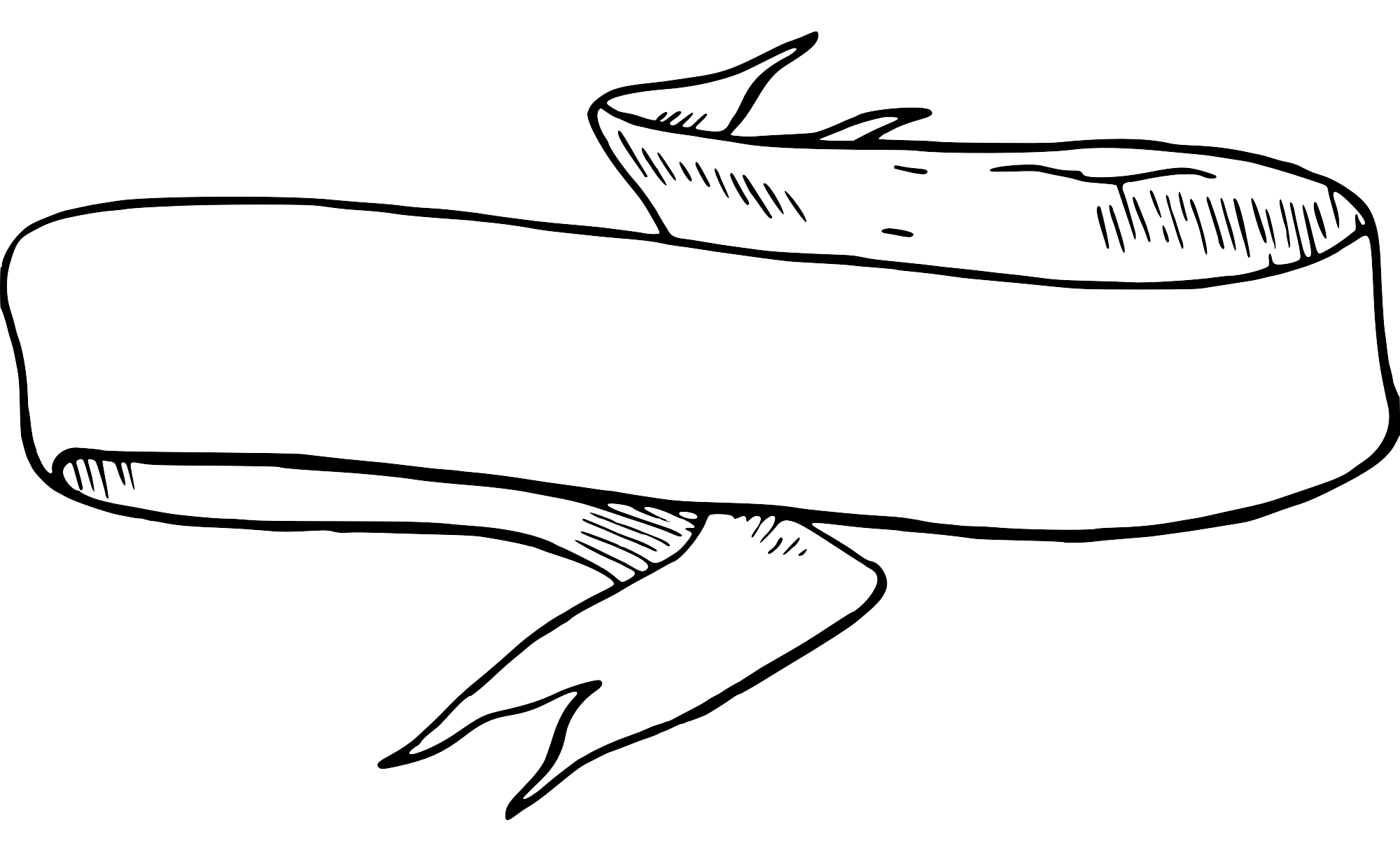 Folded ribbon banner with forked ends in rustic line art style.