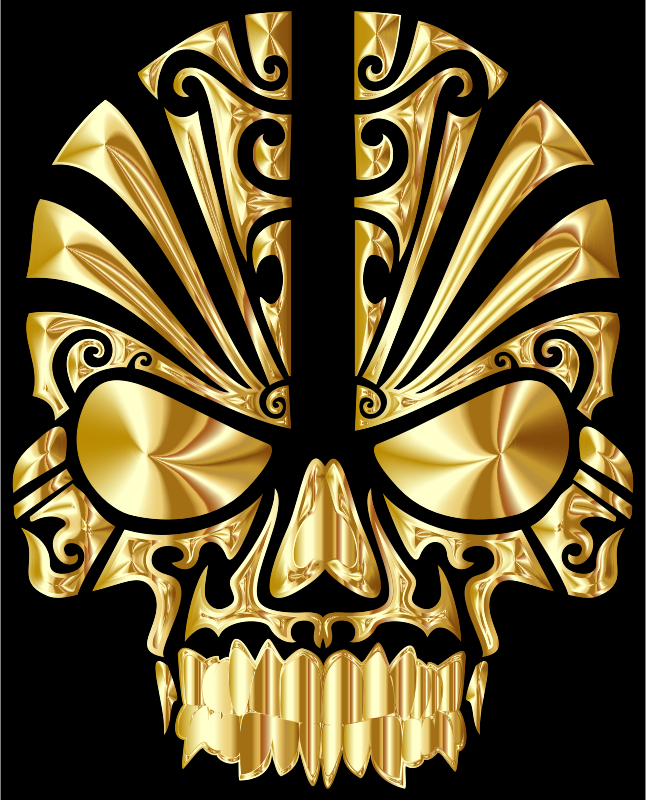Tribal Skull Silhouette 2 Gold